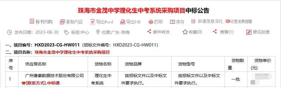 收获之秋!像素数据接连中标广东省多个理化生实验操作考试项目企业资讯
