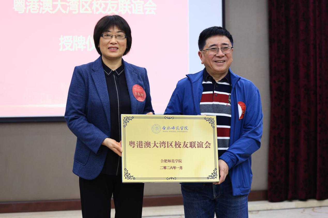 校友办负责人宣读了校友联谊会第一届理事会成员名单。方东玲为当选的第一届理事会负责人颁发聘书,并向校友联谊会授牌,标志着合肥师范学院粤港澳大湾区校友联谊会正式成立。